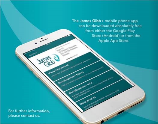 The James Gibb+ customer portal and the James Gibb+ App allow customers to view invoices and pay and control their account online, in real time. Customers can also view and download development specific information such as: